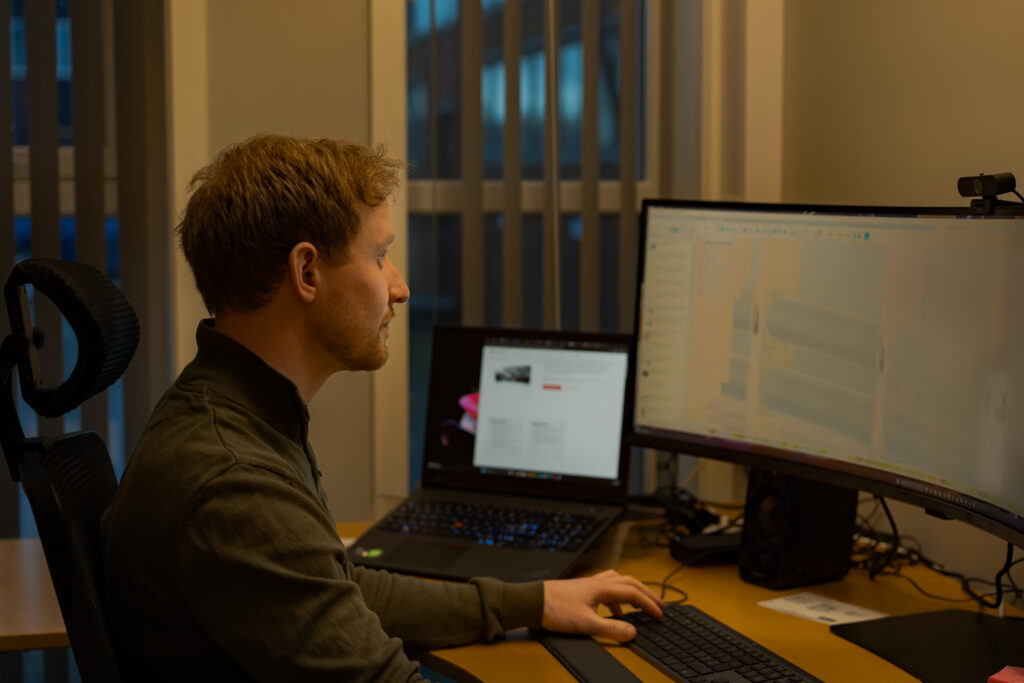 Marius og kollegene arbeider med å utvikle en ny prototype, det innebærer omfattende testing, dokumentasjon og utviklingsarbeid.
